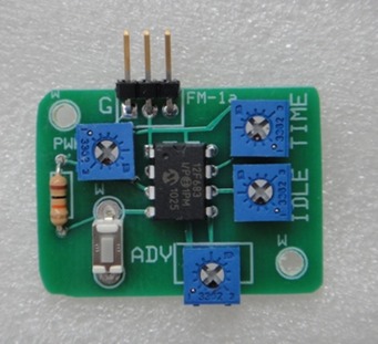 This device provides timed throtle signals to an Electronic Speed Control (ESC) that powers an elecric motor for control line flight.